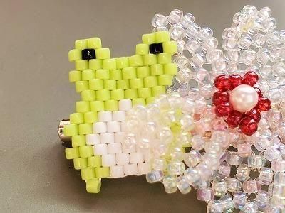 ビーズで形作ったブローチです。